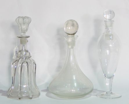 19th century moulded wine decanter, mallet-shaped with raised moulding, modern Hungarian decanter, shouldered and tapering and modern ship's style decanter (3)