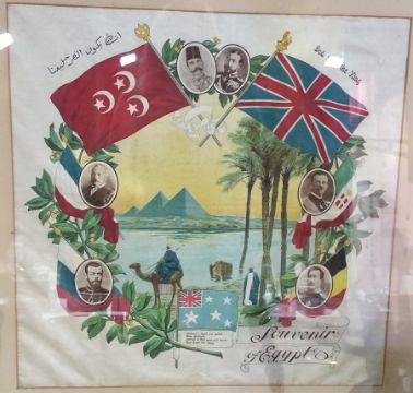 An Egyptian silk picture commemorating George V visit to Egypt, 44cm x 44cm