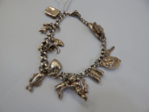 Silver charm bracelet with 14 various charms