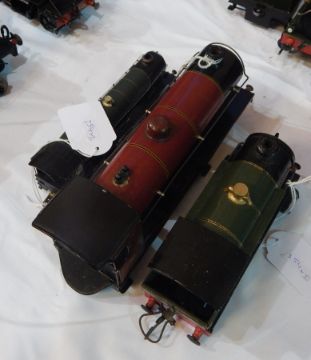 A Hornby 'O' gauge Great Western tinplate locomotive housing lacking movement and wheels, another similar part Duke of York locomotive together with a Hornby 'OO' King Richard I locomotive (3)