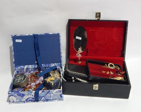 A quantity of costume jewellery, a jewellery case, jewellery boxes, etc.