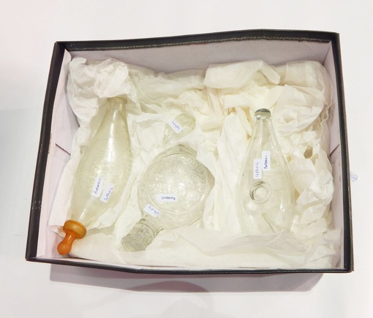 Four early feeding bottles, "The Perfectum", "The Economic" and two others (1 box)