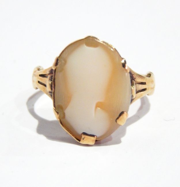 A 9ct gold white stone ring and a 9ct gold cameo ring (2)