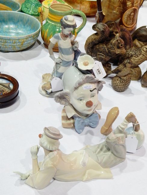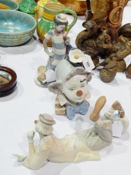 Three Lladro ceramic clown figures and heads