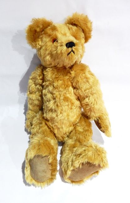 Collectors bear by Asquiths of Windsor, golden mohair, jointed, orange/black plastic eyes, stitched nose, suede pads, growler, 64cm