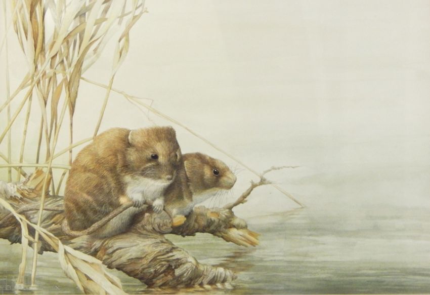 Neil Cox (b.1955) Watercolour drawing "Two Water Voles", signed, 28cm x 40cm
