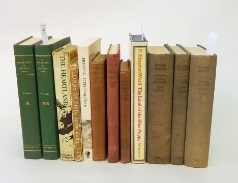 "China Proper, Volume I, Physical Geography, History and Peoples July 1944" Naval Intelligence Division, B.R.530 (restricted) geographical handbook series for official use only, various illustrations, photographic and other, folding map in pocket on back board, "Volume II - Modern History and Administration June 1945", "Volume III - Economic Geography, Ports and Communications July 1945", green cloth, gilt titles Wilson, Ernest Henry "A Naturalist in Western China with Vasculum, Camera and Gun", Methuen & Co 1913, in two volumes, green cloth, gilt titles, numerous photographic illustrations Cox, E H M "Plant - Hunting in China - a history of botanical exploration in China and the Tibetan Marches", Collins 1945, photographic illustrations, colour frontis, red cloth worn Gutzlaff, Rev. Charles "The Life of Taou-Kwang, Late Emperor of China: with memoirs of the court of Peking...", Smith, Elder & Co 1852 and various other related volumes (12)