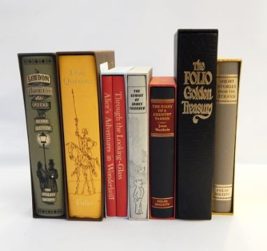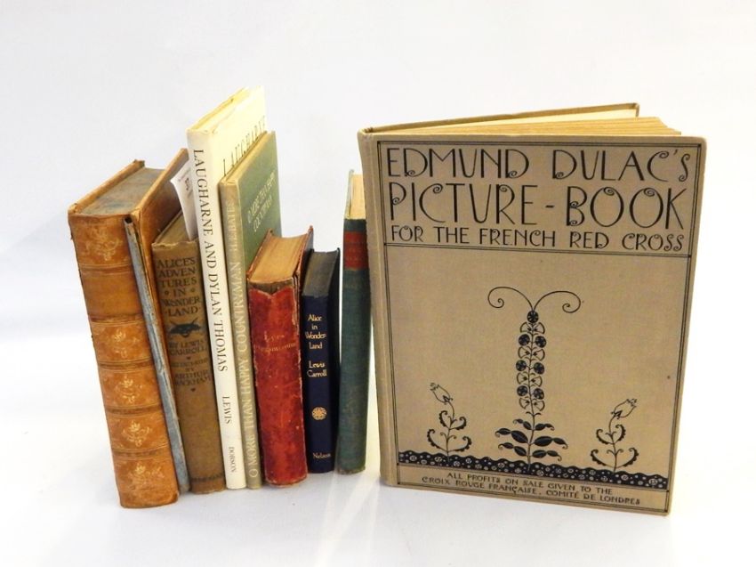 Various Folio Society books including:- Two volumes "Through the Looking Glass, Alice's Adventure in Wonderland", Rackham, Arthur (ills) "Alice's Adventures in Wonderland", William Heinemann nd, with a poem by Austin Dobson, 8vo., colour illustrations, yellow cloth, gilt pictorial decoration, black titles but book worn and stained Shepherd, E H "Drawn from Memory", Methuen 1957 "Edmund Dulac's Picture Book for the French Red Cross", Hodder & Stoughton, colour plates tipped in, grey pictorial cloth, blue titles and other volumes
