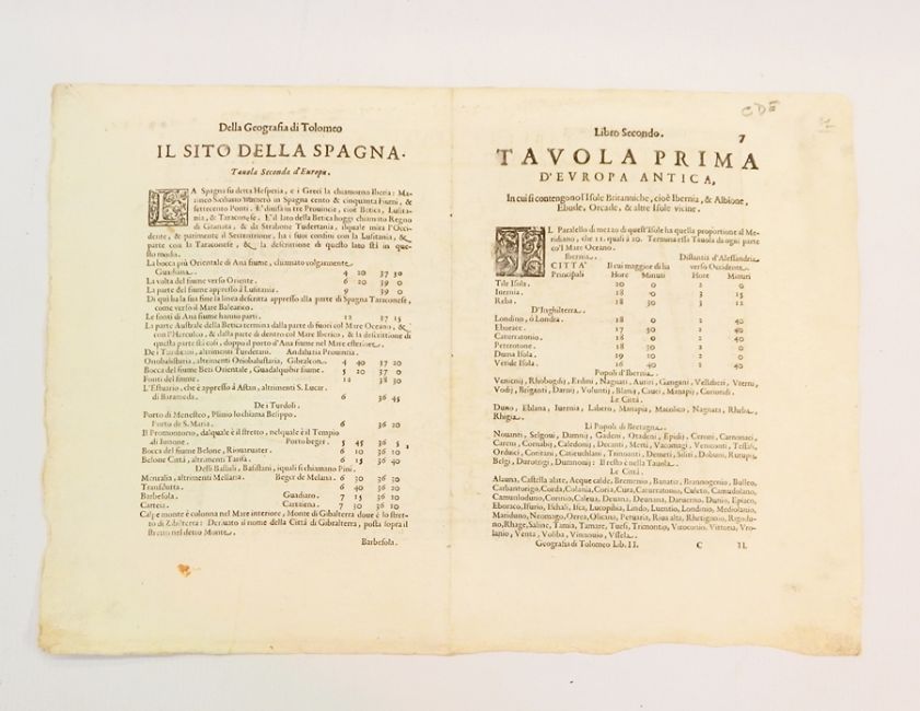 Tolomeo map of Europe, double page taken from "Della Geografia di Tolomeo Libro Secondo Tabula Europae l" un-coloured, 19cm x 27cm