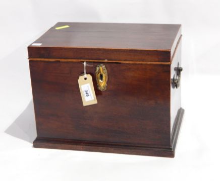 Georgian mahogany cigar box having brass escutcheon and swan neck brass carrying handle, cork-lined interior bearing inscription "formerly the property of the late Captain E. C. Spencer-Churchill purchased at the sale of the contents of Northwick Park, Blockley, Glos in September 1964"