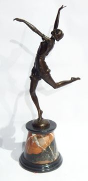Bronze Art Deco style figure after B.Zach of dancing girl in loose drapery on tapered marble base, 66 cms high