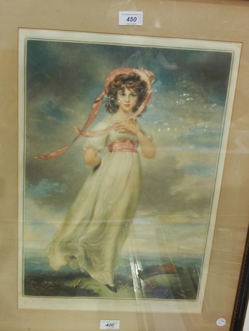 After the original Mezzotint Portrait of a young girl in pink bonnet with landscape behind, pub 1927, signed in pencil Sepia photograph of the Pantglas Foxhounds 1904-1905 depicting master and wipperins with hounds in front of house, see verso for details (2)
