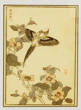 Kono Bairei (1844-1895) Three original handcoloured woodblock prints of birds (one as double page) taken from his "Hundred Birds" (1881-1884)