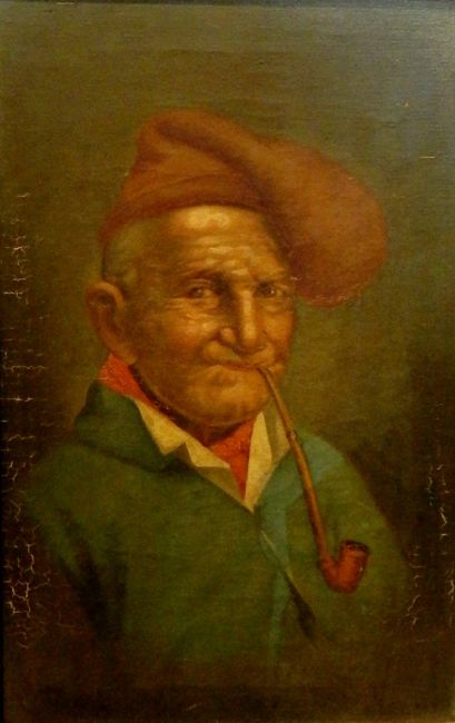 Late 19th century school Oil on canvas Portrait of an old man smoking a pipe, 38cm x 24cm
