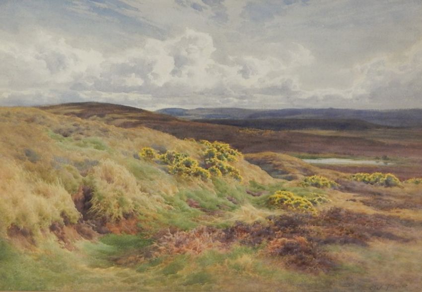 Charles James Adams (1859-1931) Watercolour Moorland scene with gorse in foreground, 37cm x 54cm (Part of Charles James Adams' studio collection consigned by his great-great-granddaughter)