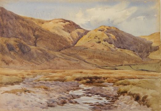 Charles James Adams (1859-1931) Watercolour Pebbled river with hills in background, unframed, 20cm x 29cm (Part of Charles James Adams' studio collection consigned by his great-great-granddaughter)