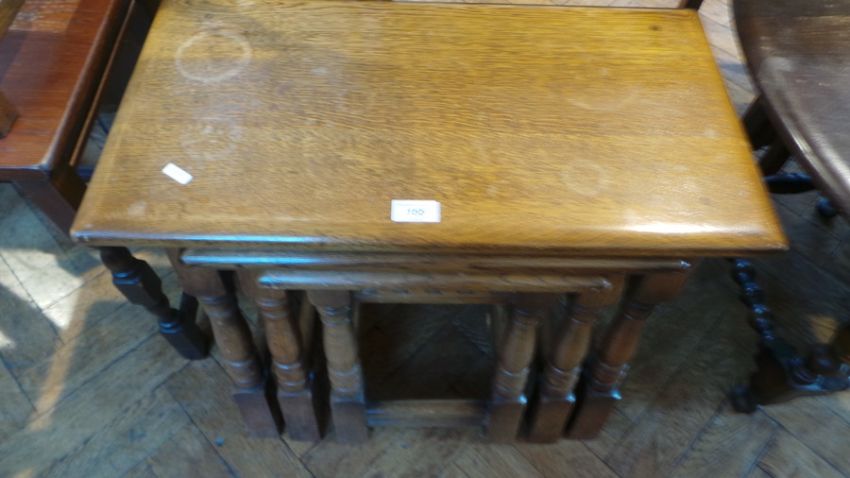 A nest of three oak occasional tables on turned legs, width 61cm