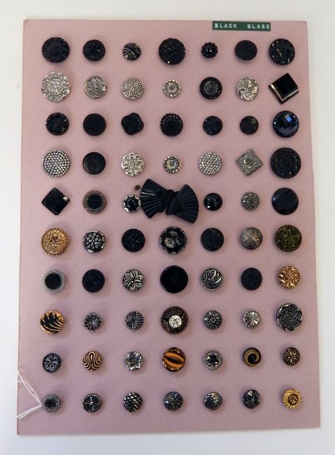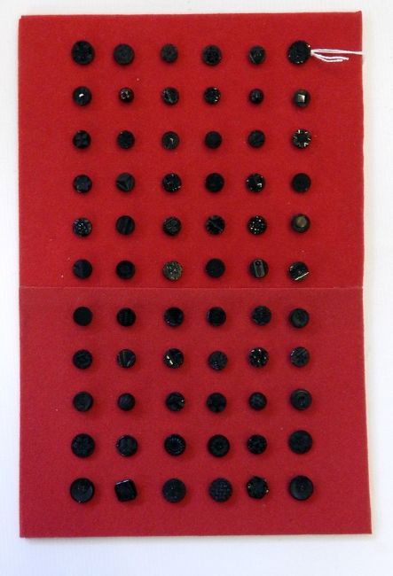 A quantity of buttons including black glass, faux-jet, steel, beaded, etc., all set on card (6 cards)
