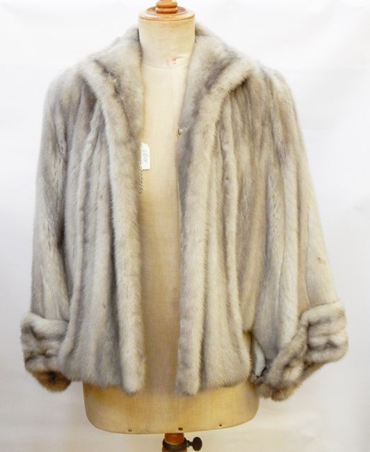 A grey mink jacket/cape labelled "Russeks", a modern chain fastening stitched inside, but easily removed