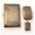 A silver vesta case, scrollwork engraving and suspension loop, a plain silver sugar bowl, a silver shaving stick case, a small silver cigarette case and a silver plate cigarette case (5)