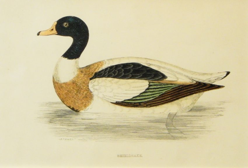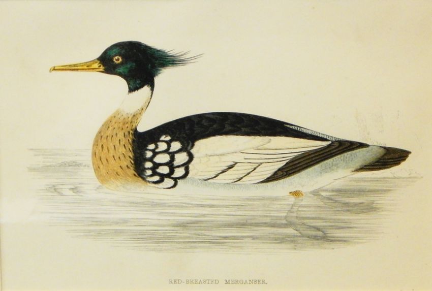 Coloured engravings of ducks to include "Harlequin Duck", "Red Breasted Merganser" and others (4)