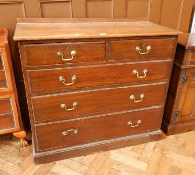An oak chest of drawers with two short and three long drawers, on plinth base, 107cm wide