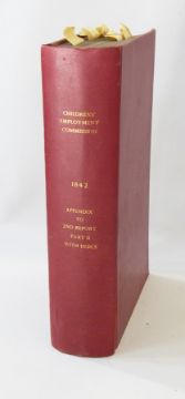 "Children's Employment Commission" appendix to the second report of the commissioners, trades and manufactures, part 2, William Clowes & Sons (1842), blue card title page with two lib st and another title page, rebound, lib plate on ffep, red cloth, gilt titles