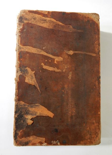Ware, Isaac "A Complete Body of Architecture adorned with Plans and Elevations from Original Designs... some designs of Inigo Jones never before published", London, printed for T Osborne and J Shipton, etc. 1756, engraved frontis loose, red and black print tp, loss top right corner taking away half of the 'y' of Body, vignette of the Pantheon, plates match as table of plates listed, some folding, from pages 381 to 427 slight tear by stitching of binding, plate 53 slight tear top of page (not affecting the engraving or margin), folding plate 30-31 most of 31 is missing, plate 25 stain in centre, plate 5 has a tear (not going into the margin or loss), plate 82 folding, edges loss and worn, plate 120 tear to top of page (no loss), index loose, back board separating, worm hole damage from page 497 chapter 9 through to end slight tear very top of page not affecting text or plates, contemporary binding but boards loose, leather worn and loss as backstrip (bought as seen)