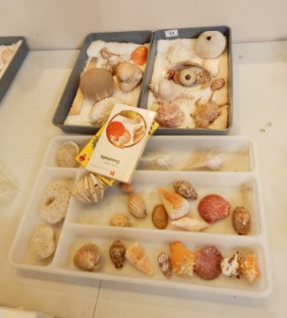 A large collection of shells including cowrie, clams, etc.