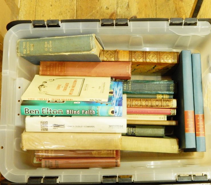 A quantity of books on various subjects including The English Missal, full leather, leather index markers, folio, Woolf V. 'Flush, a biography' 1933, cloth, stained and faded, The Register of Erotic Books' 2 vls, Agatha Christie, Lawrence D.H. 'Phoenix, the Posthumous Papers' Heinemann 1936, George Orwell 4 vols, etc. ( 3 boxes)