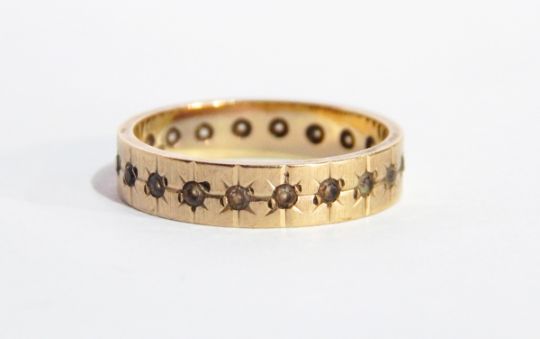 A 9ct gold eternity ring set white stones and a loose small brilliant cut diamond