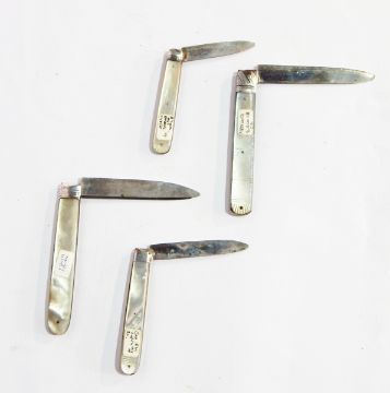 A George IV silver bladed folding fruit knife with mother-of-pearl handle, Birmingham 1822 together with three further knives