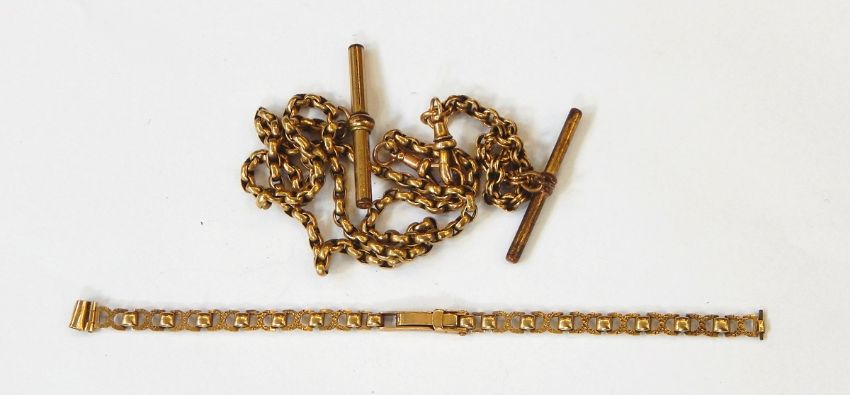 A 9ct gold watch strap and a belcher link albert chain