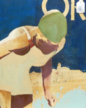 Adam Wicks Oil on board "The Diver" 1930's style image of poster, 44cm x 35cm