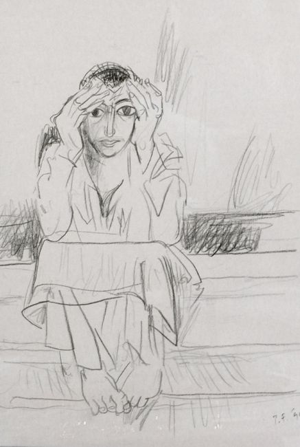 Peter de Francia (1921-2012) Pencil sketch Male figure in robes sitting on steps, signed and dated in pencil, 33cm x 23cm