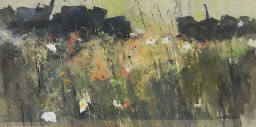Jan Clutterbuck Watercolour "By a Wall", signed, 29cm x 59cm