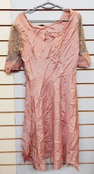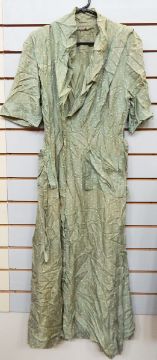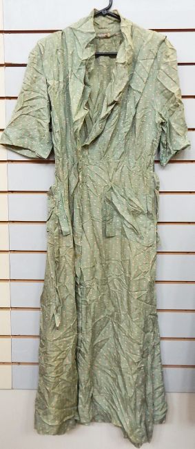 Black Chinese style jacket with white embroidery, black lace shrug, cream evening gown, green patterned wrap dress and pale pink pant dress with lace sleeves (af) (5)