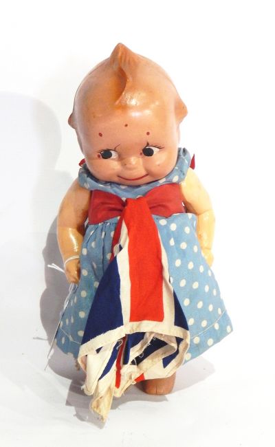 Kewpie composition doll painted with red cheeks, 24cm long