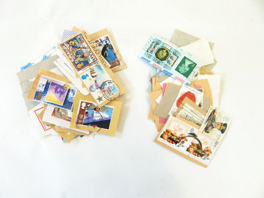 Accumulations of stamps in two envelopes to include commemorative Portugal and old currency, Scottish and Welsh