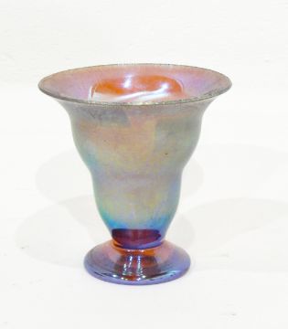 A flared rim footed vase of iridescent lustre finish, 11cm high and another item
