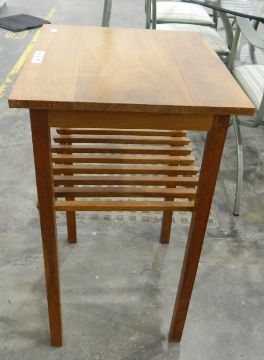 A walnut rectangular top side table, with open rack shelf below, on square legs, width 53cm