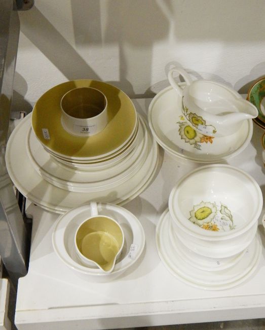 Susie Cooper 'Sunflower' pattern tableware including plates of various sizes, bowls, gravy jug, etc.