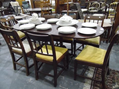 A reproduction mahogany extending dining table