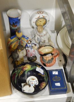 A Royal Doulton 'Falstaff' character jug, a Halcyon Days enamel box, a set of three Crown Staffordshire ceramic wine labels and various other items