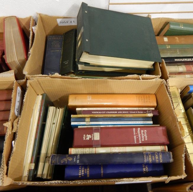 "The Science of Petroleum" in four vols,"The Science of Petroleum" in three vols, blue cloth, gilt titles, ex-library"The Mercantile Navy List 1976" four volsTraill"Chain Cables and Chains", blue cloth folio, gilt titlesColquhun "Wealth, Power and Resources", rebound library cloth and various other related volumes (2 boxes)