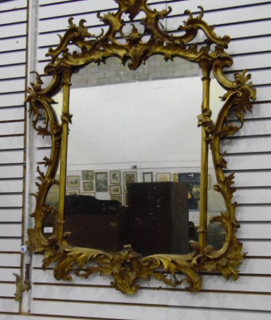 A rococo style gilt carved mirror with floral and scroll engraving, 80cm wide