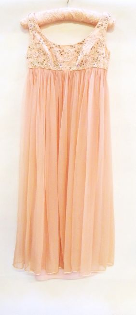 A pink chiffon and embroidered Empire Line 1960's/70's evening dress with a Harrison black satin bias cut sleeveless evening dress with a choker detail designed as a zip