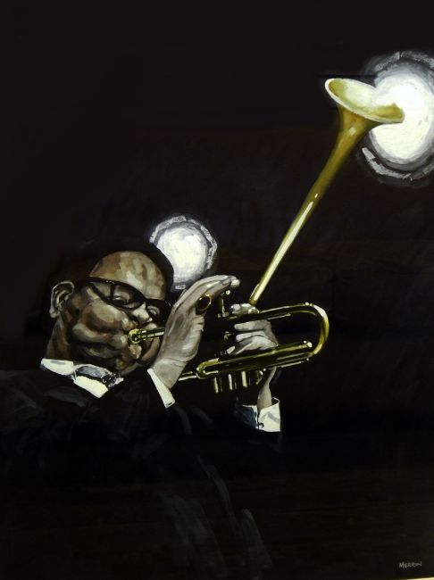 Merrin (20th century) Watercolour heightened in white"Dizzie", jazz musician, signed lower right, 73cm x 54cm