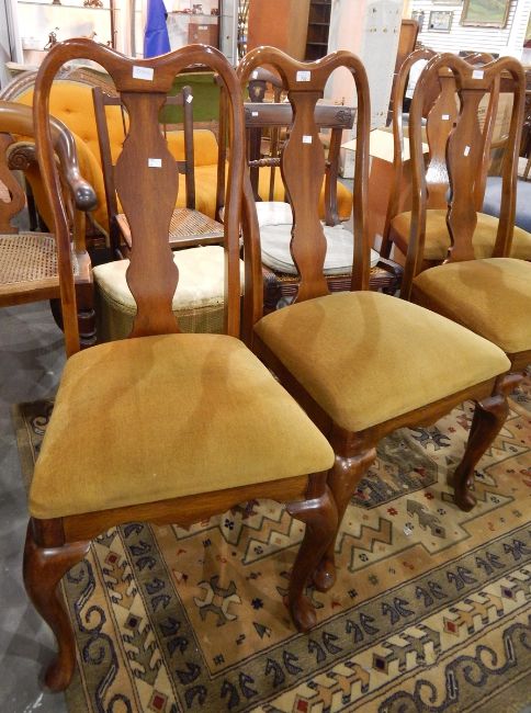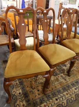 Four modern reproduction oak armchairs with green baize cushions, on cabriole and bun feet (4)