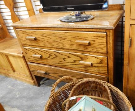 An oak dressing chest of three long drawers on square tapering legs, 90cm wide